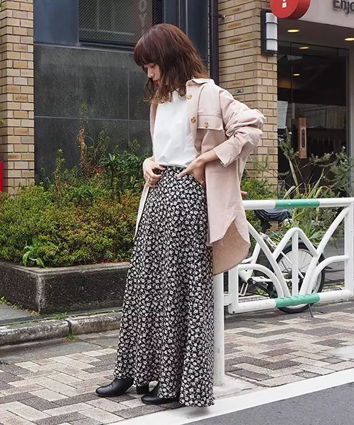 花柄スカートの秋コーデ 幼くならない大人の着こなしを要チェック Folk