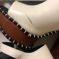 合皮などの素材で白などの薄い色の靴によく こすれて黒い線がつま先なんか Yahoo 知恵袋